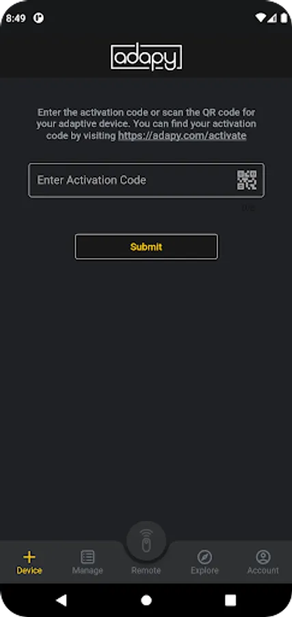 3. Add your Adaptive Equipment to your device list from within the Adapy app. (Scan QR code on Adapy.com)