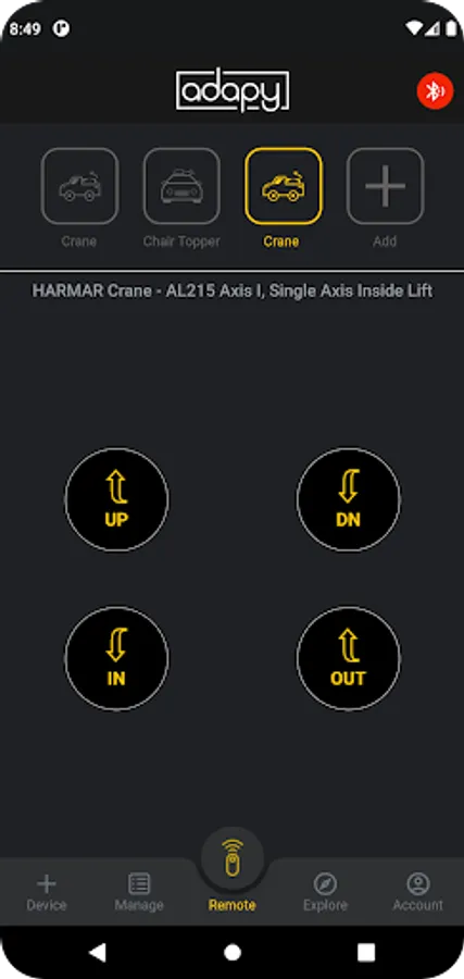 The Adapy Mobile App works with the majority of wheelchair lifts & Cranes, Automated Vehicle Doors, Truck bed Toppers, as well as your transfer seat.