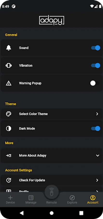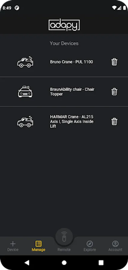The Adapy Mobile app serves as a Universal Remote Control for your adaptive equipment.
