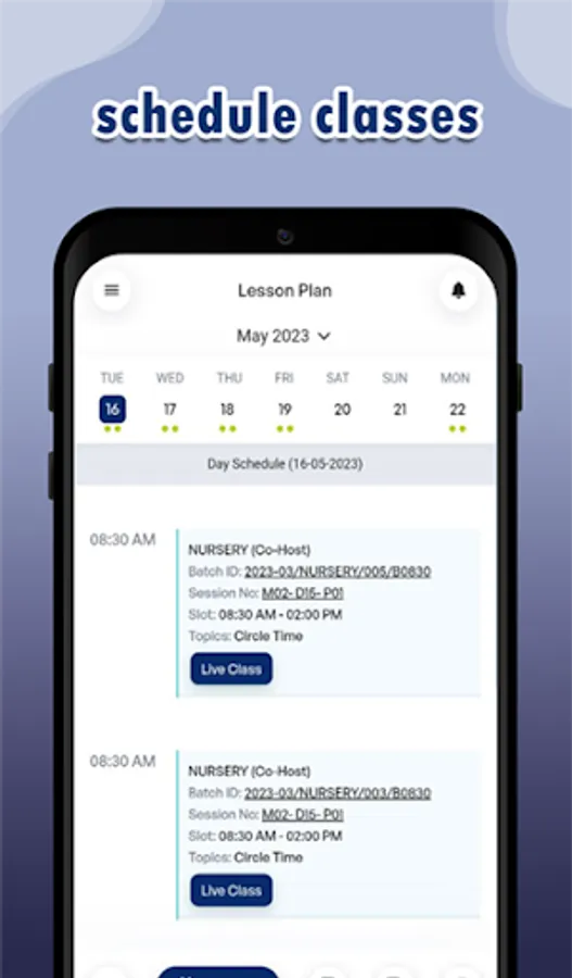 Notifications - All important notifications are sent to teacher in form of push notifications