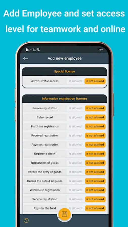 - Ability to register visitor, warehouse, clerk or employee with customizable access to store information
