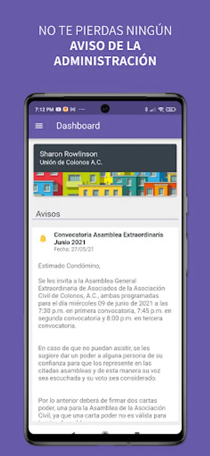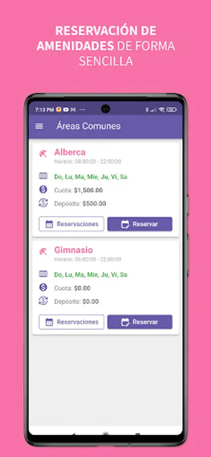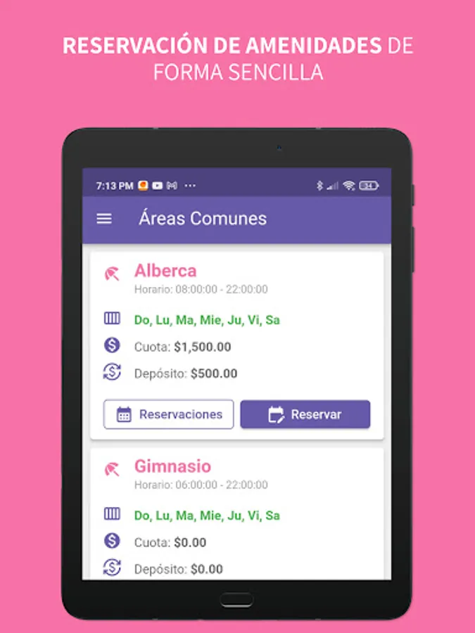 The AdKondo mobile application allows you to consult the movements of your property and condominium in a simple and clear way, as well as reserve common areas (amenities), find out in a timely manner about notices published by the administration, know the directory of your condominium, list of providers and more.