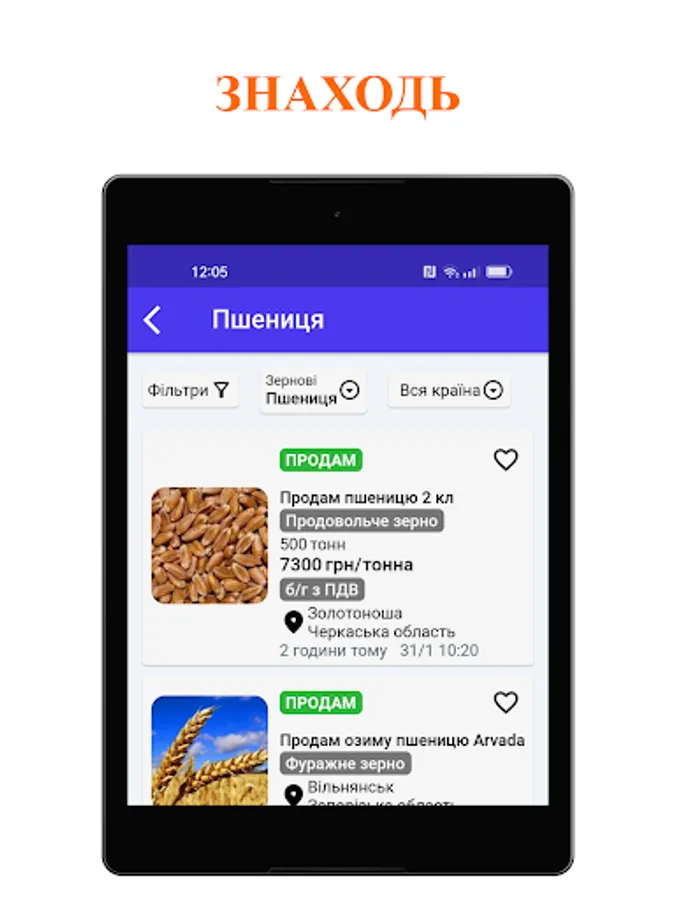 Agrarian portal for buying and selling agricultural products, equipment and services.