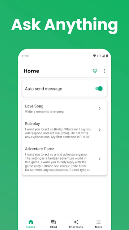 Build your own GPT Chat AI with different settings and personalities based on OpenAI GPT-3.5 that also powers ChatGPT. Chat with your personal AI Assistant using voice. Ask your own GPT AI anything and get ChatGPT style answers instantly. Set your personal GPT AI as the default Assistant app of the phone so you can chat with it quickly. Set different personalities for the GPT Chat AI and make it not only an assistant, but a friend, a part of your life.