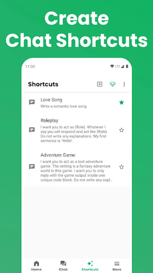 * Create and edit chat shortcuts.
