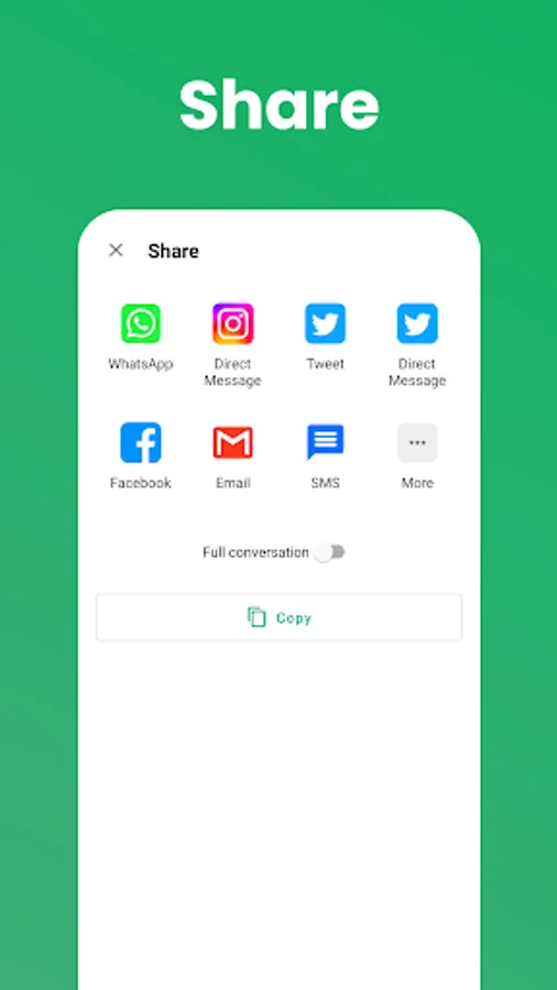 * Share chats to social apps instantly.
