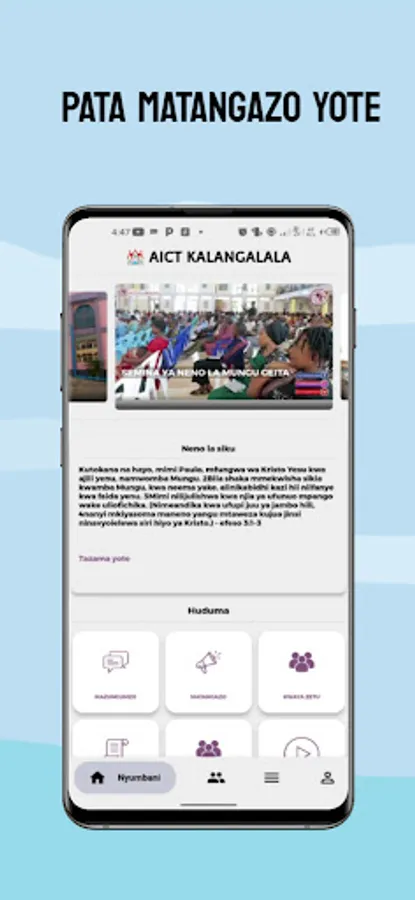 The smart phone application enables members of the AICT KALANGALALA GEITA church to access a wide range of modern services anywhere at any time.