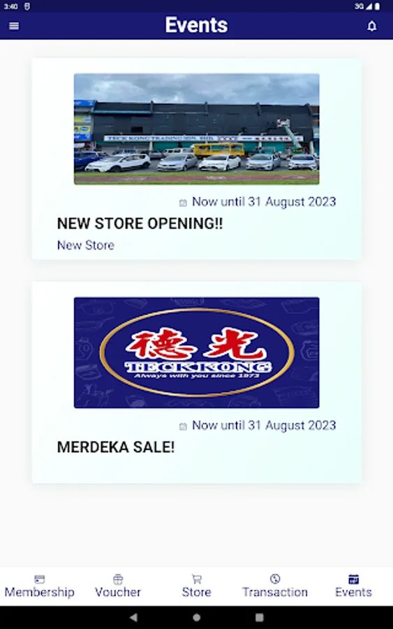 Teck Kong Member App aims to bring you to a new shopping experience and comfort level. Be the first to get notified with our exclusive rewards and our upcoming events. Download and sign-up E-member now to enjoy all these features.