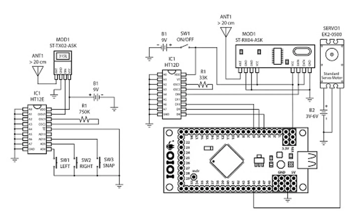 Dock : ST-RX04-ASK, HT12D, IOIO or IOIO-Q board and Servo motor