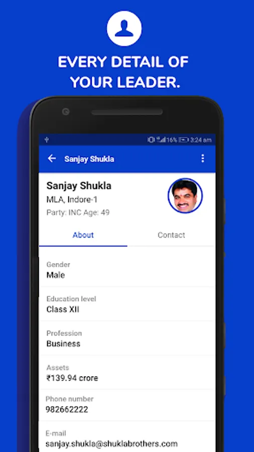 1. Your leaders: You can check who your leaders are, their contact details, phone numbers, permanent and local addresses, criminal cases, their wealth and much more. Search information about all assembly representatives of India.