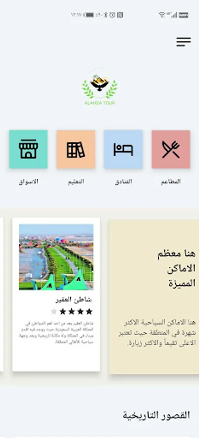 يهدف هذا المشروع إلى عمل تطبيق عن مدينة الأحساء وأشهر الأماكن الأثرية والسياحية والتعليمية فيها وسهولة التعرف اليها للزوار القادمين من داخل وخارج المملكة ويوجد داخل التطبيق العديد من الفئات قسم المطاعم ويحتوي على افضل المطاعم داخل المنطقة ايضاً ستجد داخل التطبيق قسم خاص بالفنادق فيها العديد من الفنادق وقسم يحتوي على المعاهد والجامعات داخل المنطقة وقسم للاسواق التاريخية ايضا ستجد افضل الاماكن السياحية بالمنطقه و القصور التاريخية.