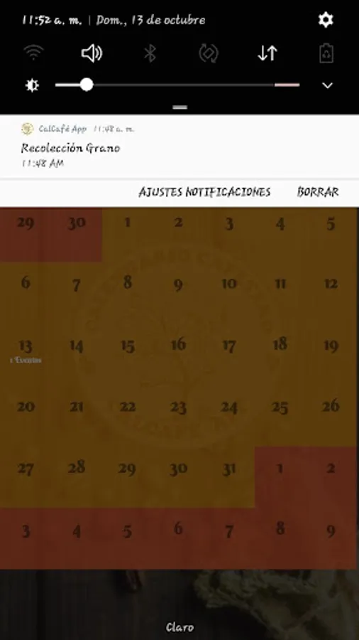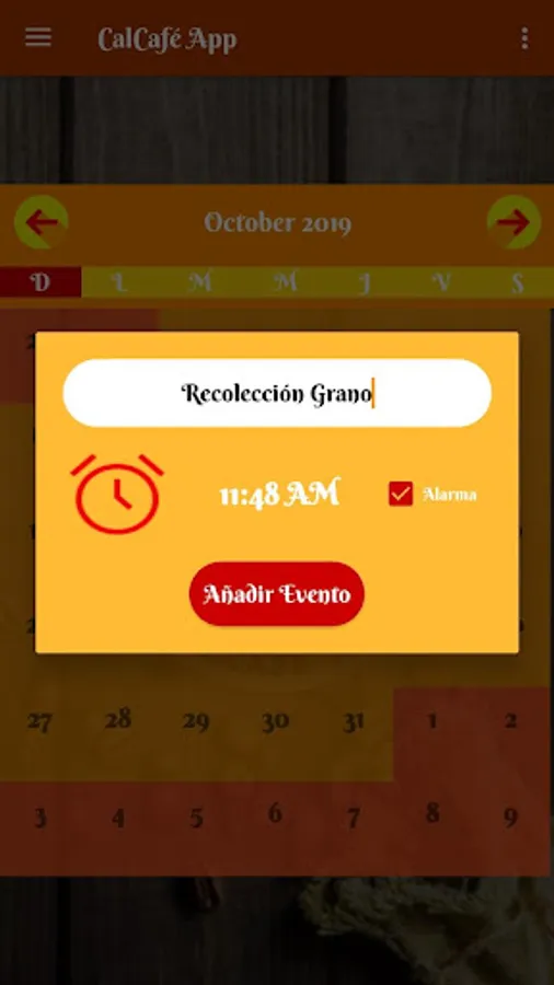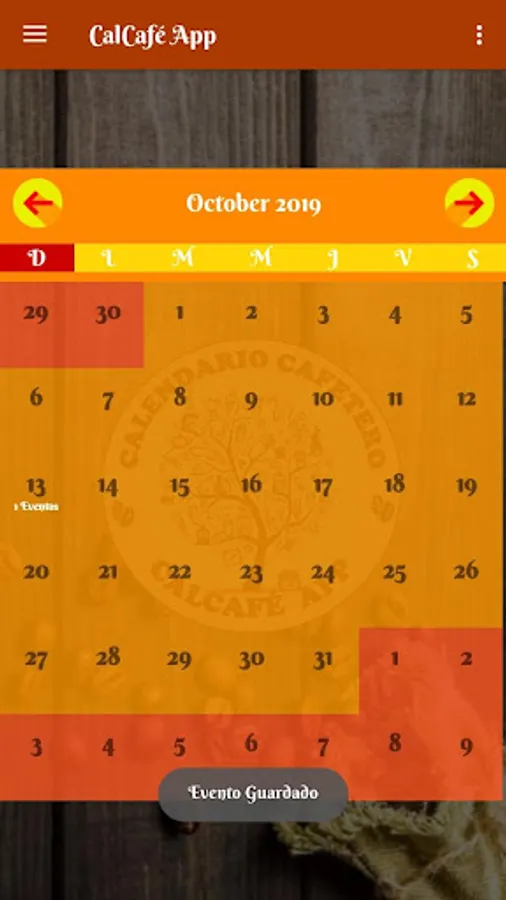 Our application consists of a calendar that is focused on the work of coffee cultivation, where the user can store by means of a reminder data of applied inputs, coffee collections, cleanings of the same etc.