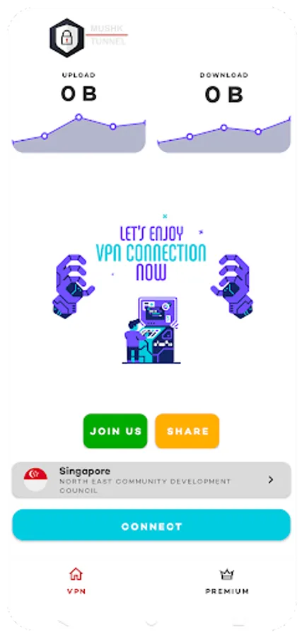 Mushk tunnel is the tool which enable your device to be safe on the network and also to enable you unblock some of the sites and features, Also protect you from the hackers who can take advantage on your devices by blocking them from finding you!