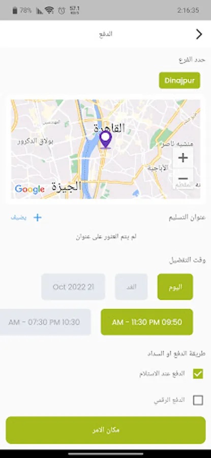 في الوقت المناسب ليك تقدر تقرر طلبك يوصلك على طول او في الوقت اللي تحدده