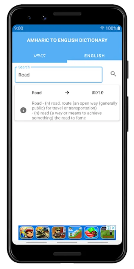 English Amharic Dictionary አማርኛ - እንግሊዝኛ መዝገበ ቃላት free & offline