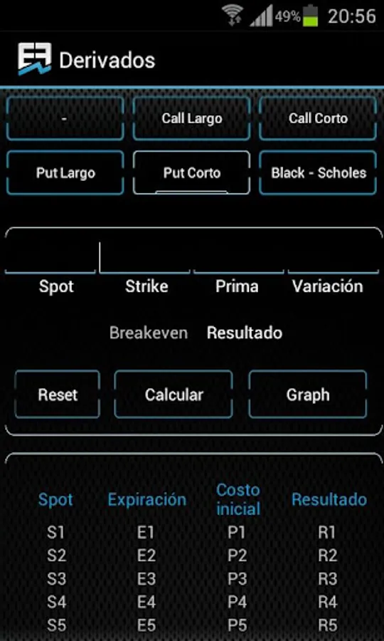 - Options: buy a call, sell a call, buy a put and sell a put. You can graph.