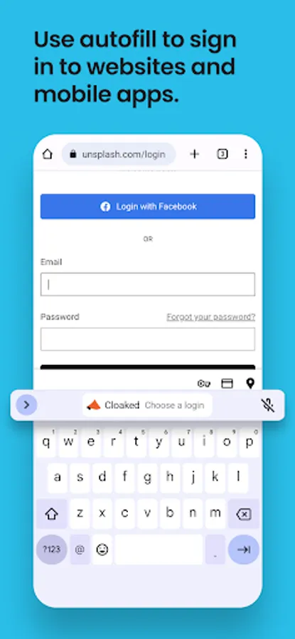 • Enable Cloaked autofill to easily sign in to existing website accounts and mobile apps (just like Keychain)