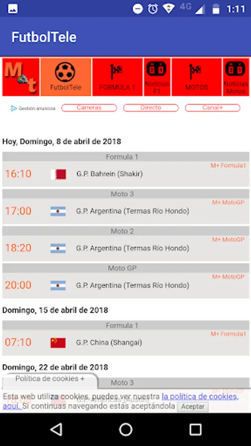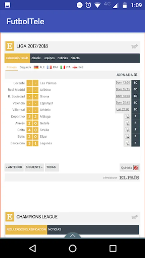 Application that allows you to see the schedules and the TV Channel (between all channels of the Spanish's broadcasts) which are televised to different BBVA La Liga soccer teams and the Spanish national team.