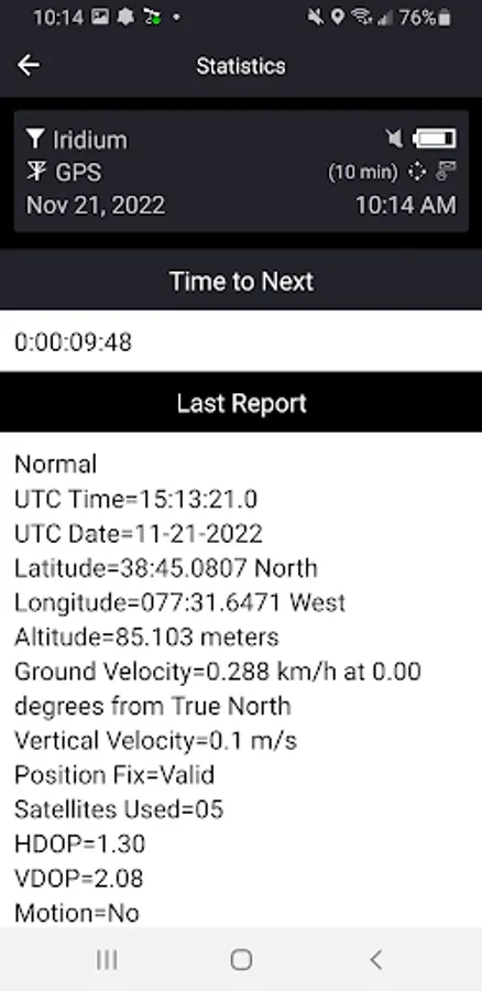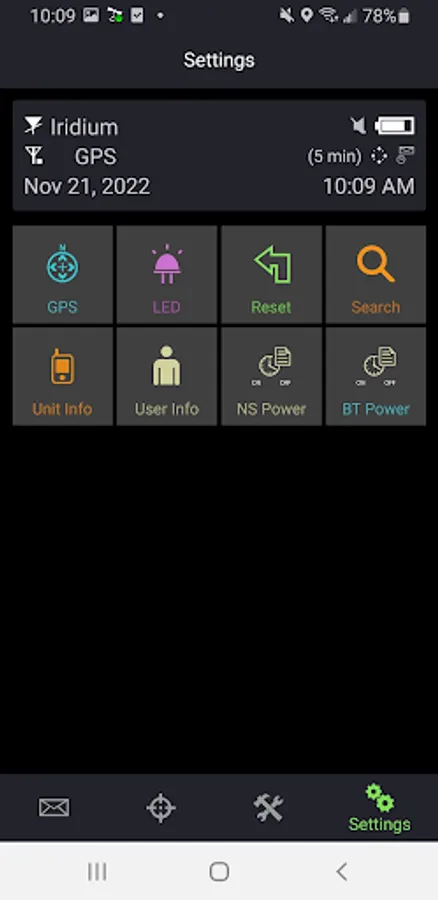 - Real time check of the Iridium signal being received by your device