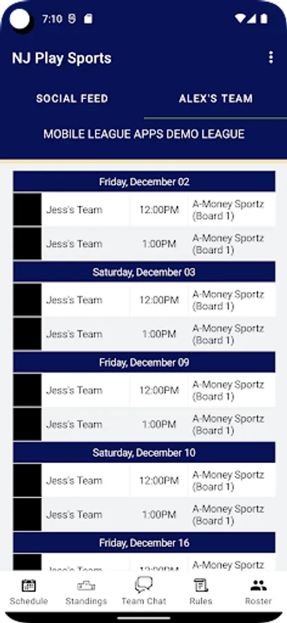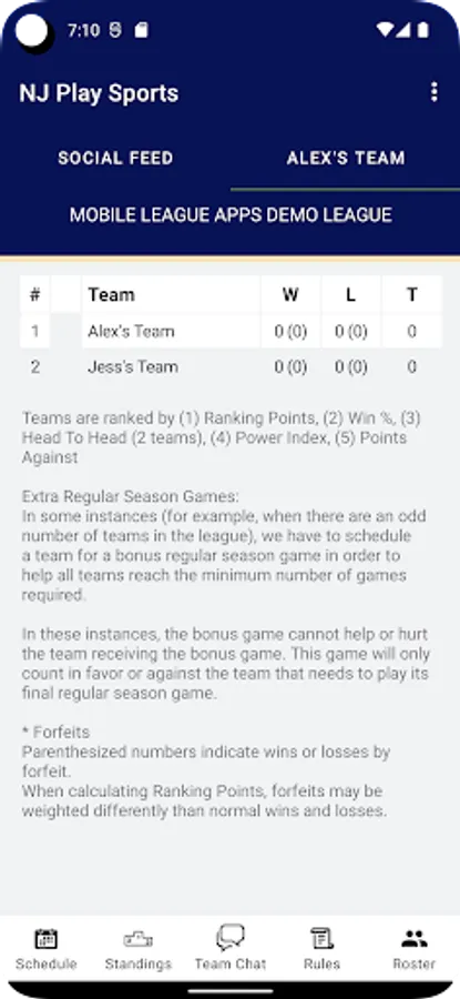 The NJ Play Sports app allows players to get notifications (rainouts, results, league news, and more), chat with their teammates, and view team schedules & standings on their mobile device.