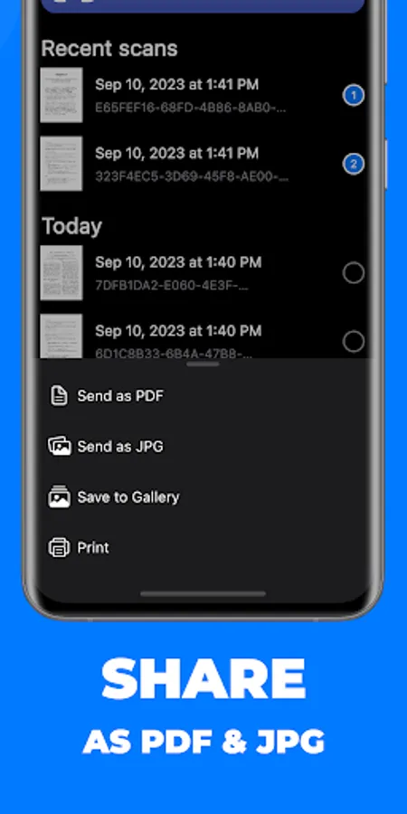 Choose between PDF and JPG formats to share your scans, depending on your specific needs. PDFs are perfect for business documents and presentations, while JPGs are ideal for sharing photos and visuals.