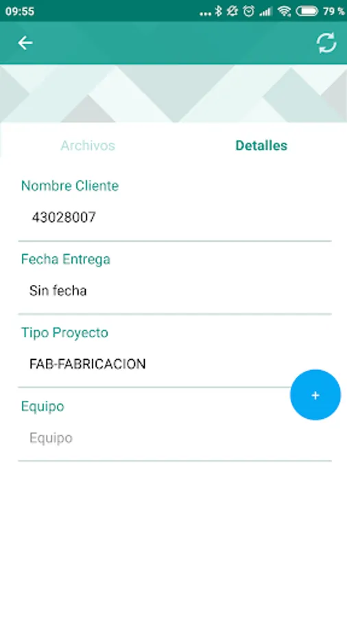 Application of ONYXERP that allows the consultation of the company's projects, as well as the addition of any type of document to them, either as justification of the work carried out or as a record of references of these, marking as favorites those on which a quick consultation is desired.