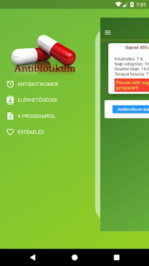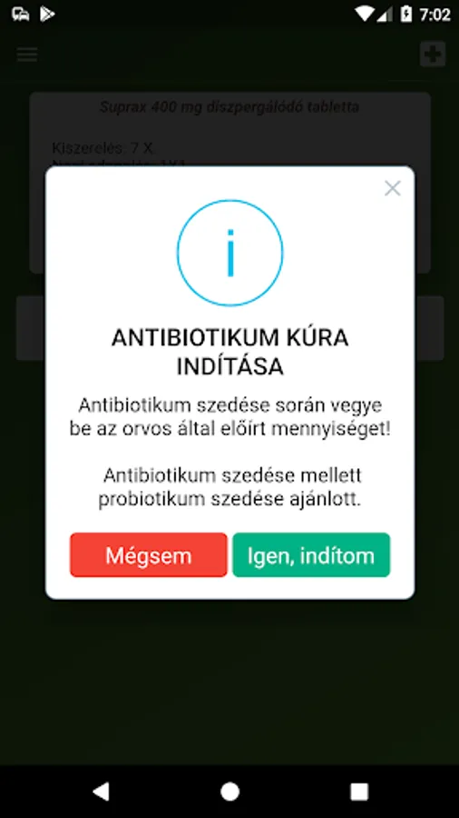 The application is a simple, easy-to-use, new, unique feature that works with the prescribed dosing regimen for a given drug, and does not handle personal or other patient data. At the end of a given dosing schedule for a given drug, the application automatically clears further warnings without overburdening the patient with additional unnecessary signals.