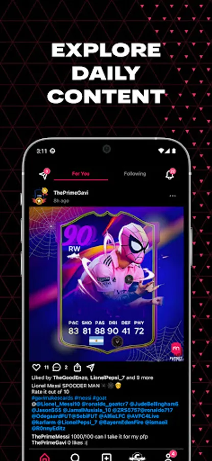 Explore friends' and recommended content. Gain insights into the art of squad building by discovering how soccer fans worldwide construct teams and utilize cards. Express your admiration by liking and commenting on ultimate team content. Join engaging football discussions within the thriving Futnet community. Excited about your latest pack openings and amazing cards? Share your enthusiasm with the Futnet world.