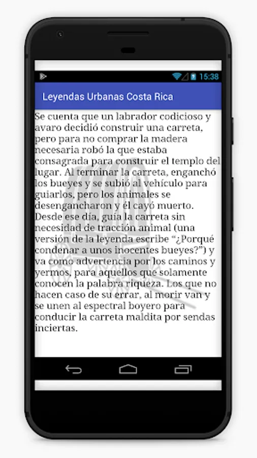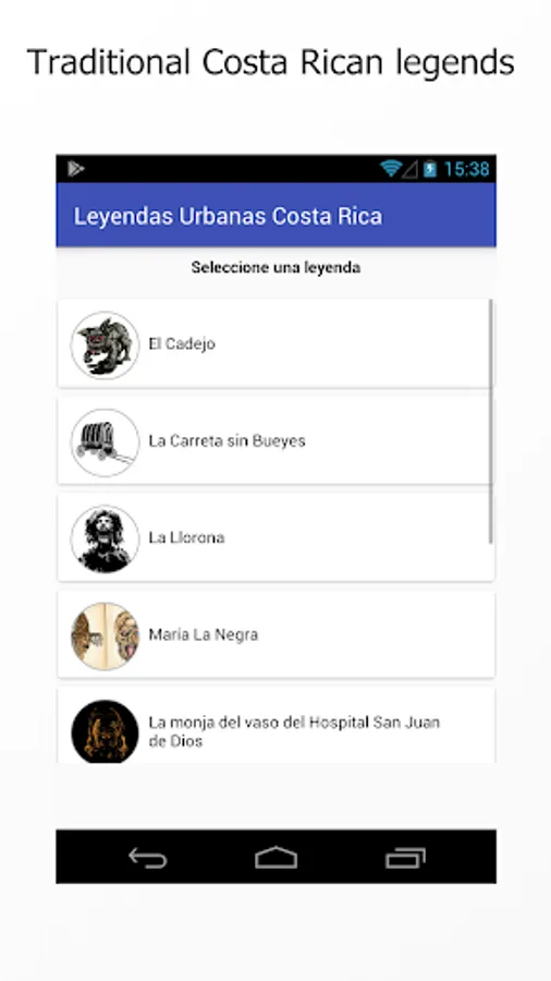 Urban Legends Costa Rica is an application that compiles different legends that have emerged over time in the country, the application tells us how these characters were born and why they were so feared by our grandparents, the legends are part of culture and folklore from the country. Now with the era of technology many children grow up without knowing about these interesting stories and could be in danger of disappearing, that's why the initiative to have a technological platform where we can access this information is born.