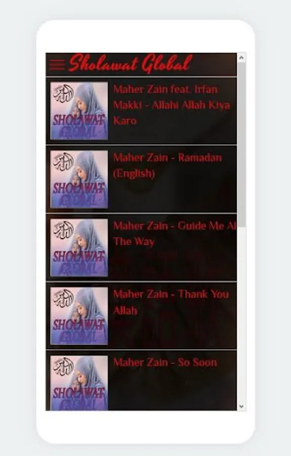 Sholawat Global adalah mp3 player yang berisikan Lagu Sholawat yang merdu yang di nyanyikan oleh beberapa penyanyi baik dari Negara Indonesia dan dari penyanyi penyanyi International lainnya. Beberapa diantaranya adalah Sabyan, Sami Yusuf, MesutKuris, Maher Zein dan masih banyak penyanyilainnya, Semoga Aplikasi ini bisa bermanfaat untuk sodaraku semua.
