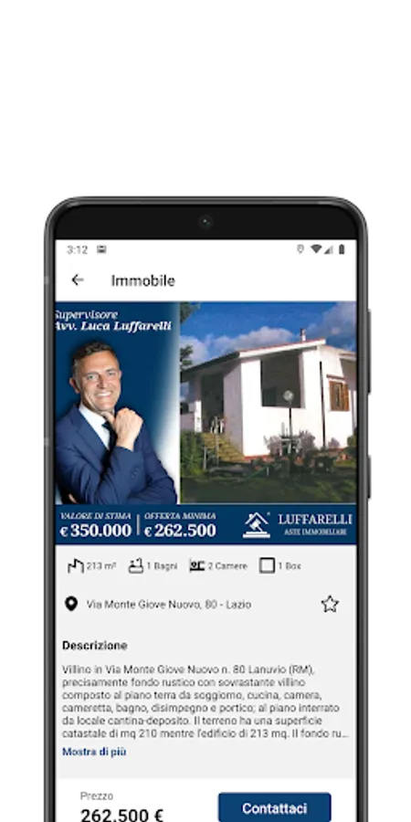 "Luffarelli Aste Immobiliari" is an application that allows users to view the catalog of real estate auctions. Users can browse through the auctioned properties, see details and information about the auction, such as description, photos and location
