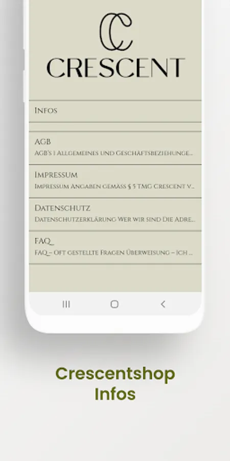 Welcome to the Crescent Shop App, your ultimate shopping experience! We offer a wide range of modern textiles, fashion, jewellery, lifestyle and home products to meet your needs. With our app you can shop easily and conveniently by browsing our range and saving items in your shopping cart. We also offer secure payment options and fast deliveries to ensure your orders get to you as quickly as possible. Our app is perfect for anyone looking for trendy products and lifestyle tips. We also offer personalized products that you can customize to your liking. Get inspired by the Crescent Shop App and discover your style today!