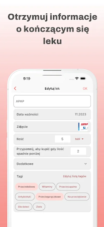 The first aid kit will allow you to monitor the status of medicines, dietary supplements and other medical devices in your first aid kit. You can easily check their quantity and expiration date.