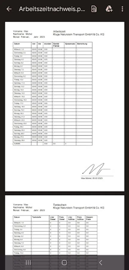 The fuel ticket is created with information about the respective gas station, the number of liters and the price.