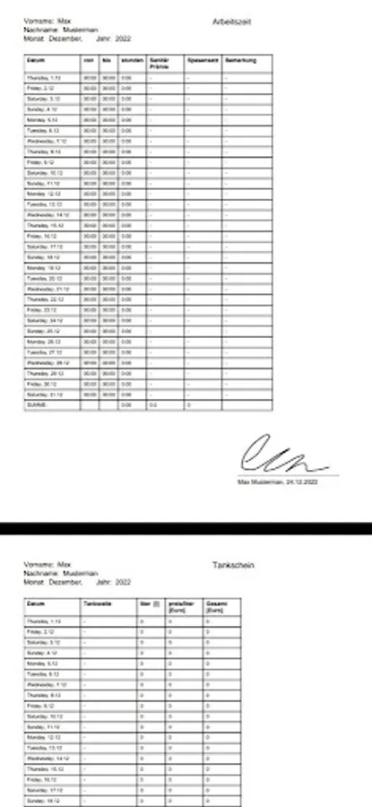 The fuel ticket is created with information about the respective gas station, the number of liters and the price.
