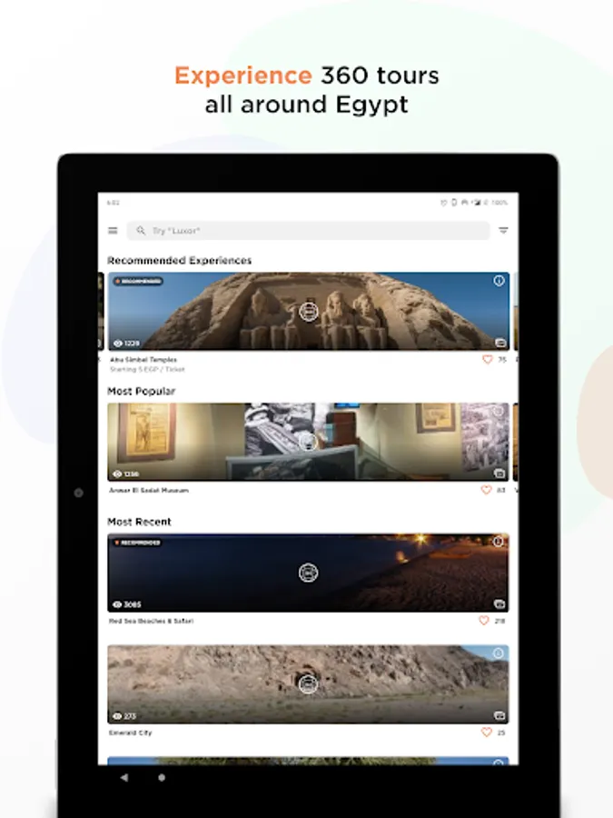 ● Check out 360 photos and videos for over 30 spots in Egypt