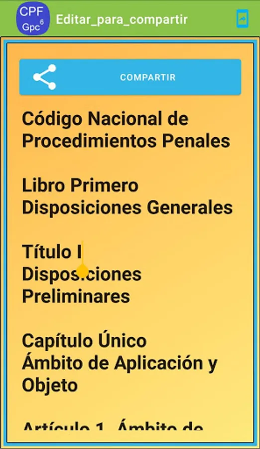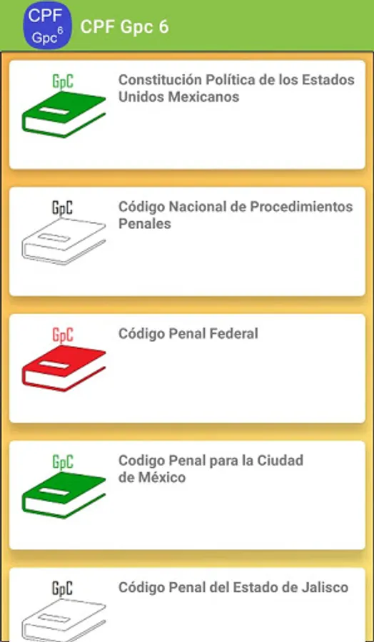 The “APP” is based on the grouping of: The Federal Penal Code, The National Code of Criminal Procedures, The Political Constitution of the United Mexican States, The Penal Code for Mexico City, The Penal Code of the State of Jalisco and the Penal Code of the State of Morelos; in order to form the appropriate group of material to be able to study, analyze, consult, comment, suggest, edit and share the Penal Code.