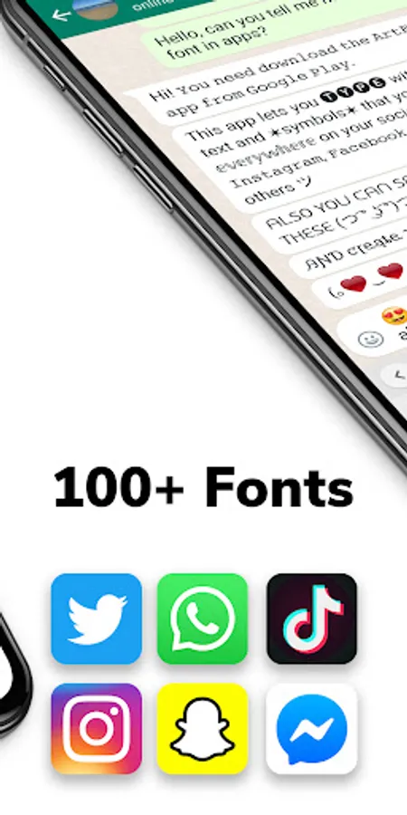 ArtFonts app lets you type with stylish text that you can use everywhere on your social media like Instagram, TikTok, Facebook, WhatsApp, Snapchat, Skype, and more.