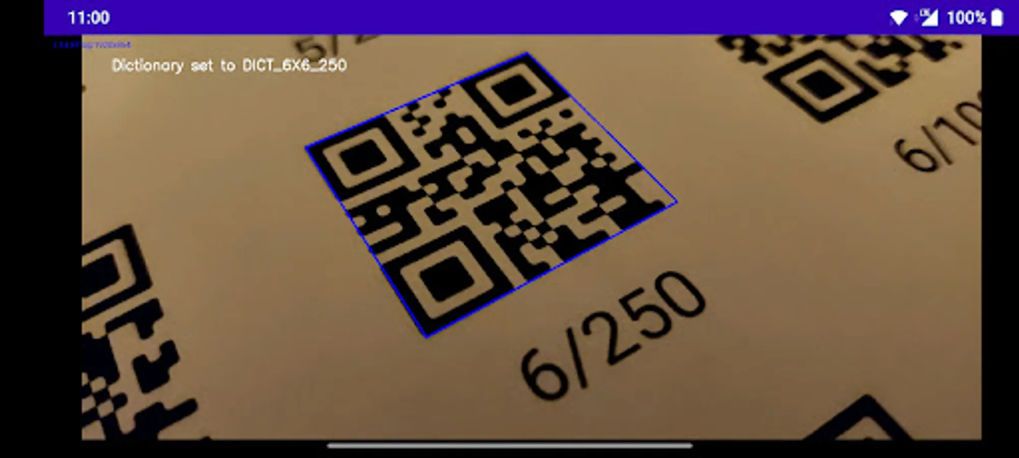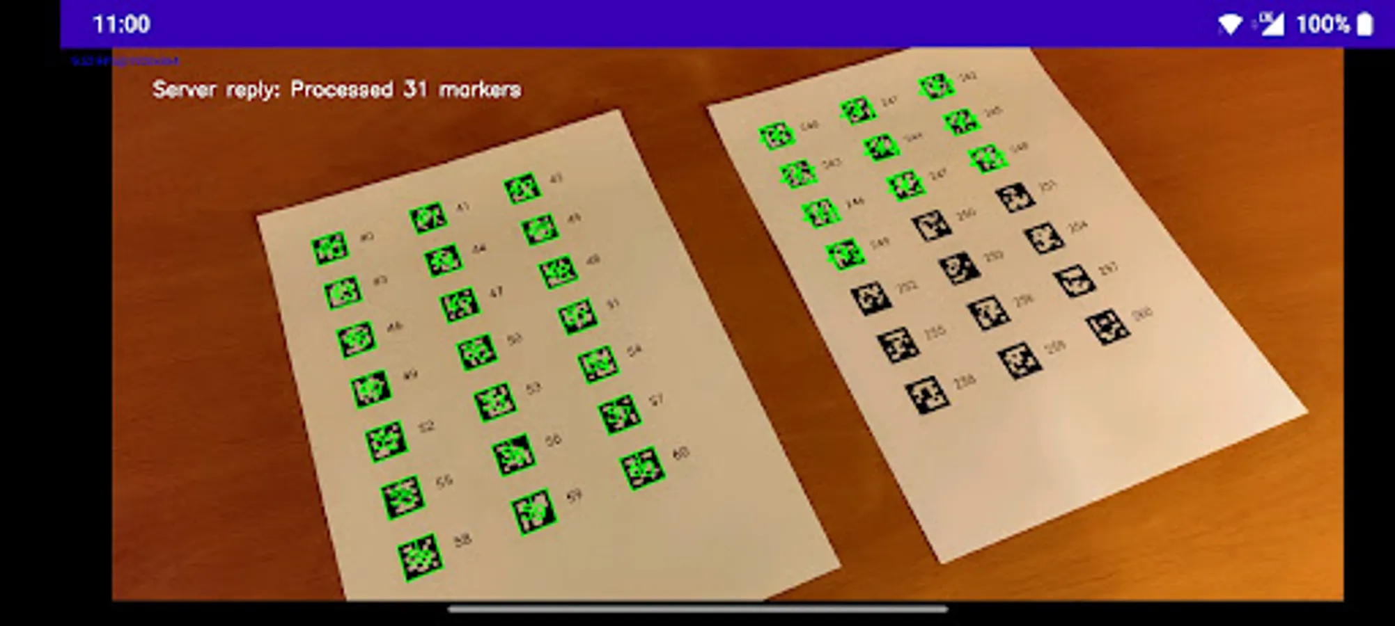 To use this app for a new game, you should pick one of the standard Aruco dictionaries and print a distinct marker on each unique card. Run a server that accepts POST requests with a JSON payload over either http or https. Print a QR code with the server url and the dictionary name (e.g. DICT_6X6_100) separated by a space. When running the app for the first time, scan this QR code to configure the server url and to load the dictionary. At this point Aruco markers should show up with a green outline in the app. Touching the screen will send a JSON payload to your server with the image frame size, the touch coordinates and the coordinates for each detected marker along with its orientation and identifier. The image itself is not sent over the network. When processing the request on the server, you can send a short line of text in your http response and it will show up as a message in the app.