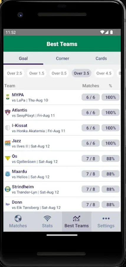 Create football alerts for in-play stats such as corners, cards, goals, shots & more.