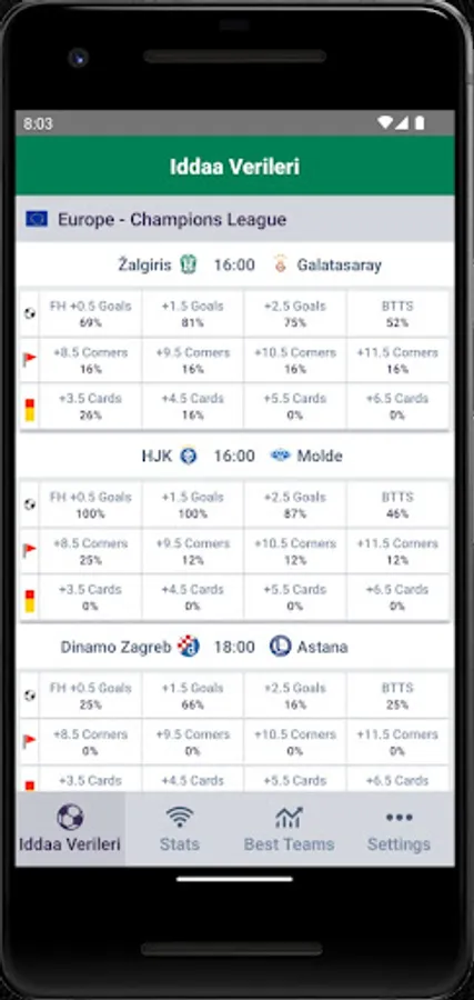 Ayrıca akıllı canlı tahmin sistemi ile canlı oynanan maçlar için tahminler üretir.