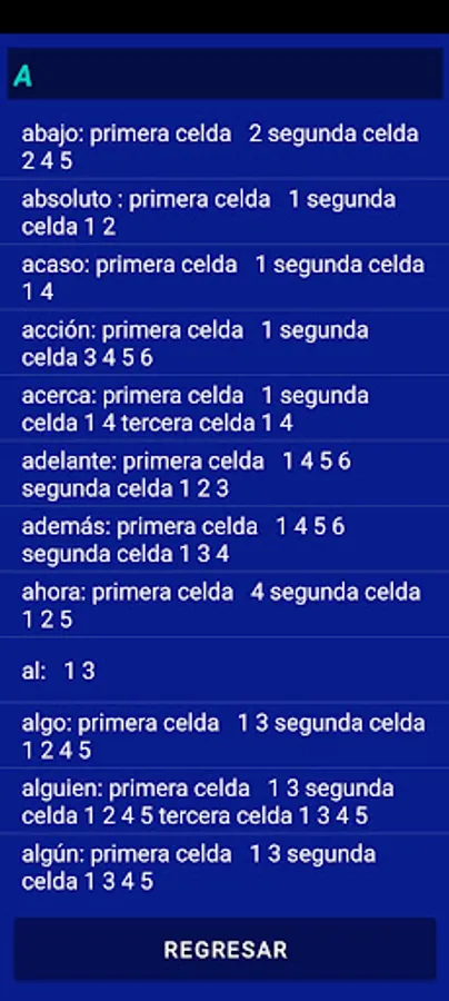 Upon finding the word, the assistant will say the number of cells and the braille dots present in each box.