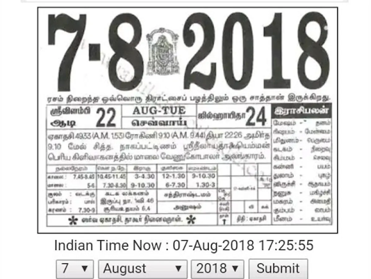 - Tamil Calendar 2018 is also available . நாள்காட்டி. Daily Calendar and Monthly Calendar in Tamil is available.