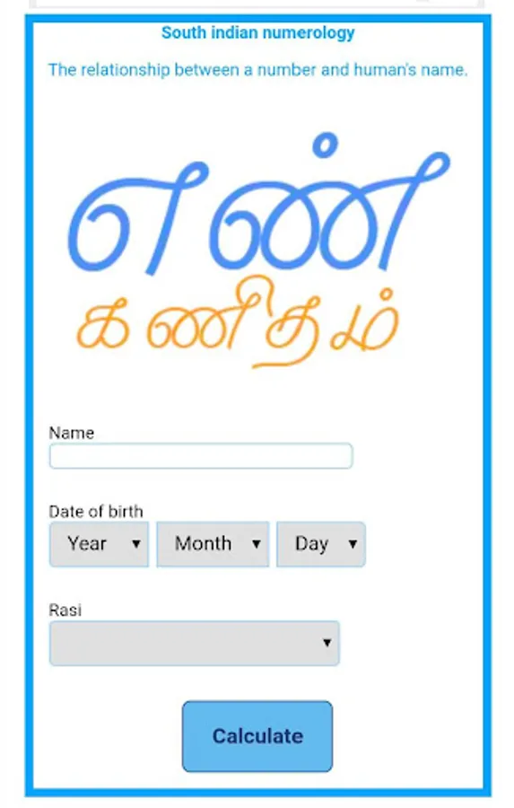 - Tamil Numeroloy : Numbers play a very important role in our life. Numerology Tamil calculates our name number, birth date and gives suitable results. En Kanitha Jothidam tamil is a native version of this calculation.