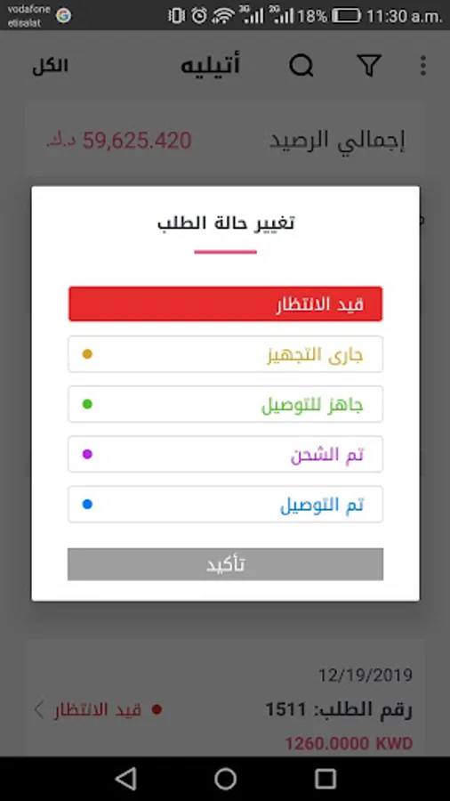 View and edit the status of your orders.