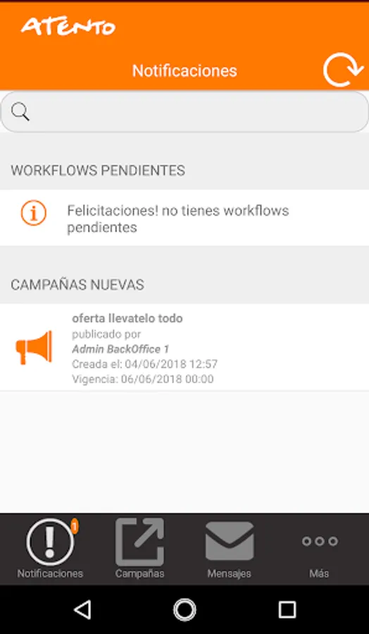 web management platform for field service Atento Chile. Access to view internal news or news about the service, several warnings, manage your sales, compete in trivia, participate in surveys.