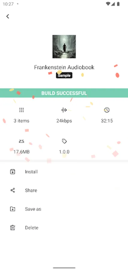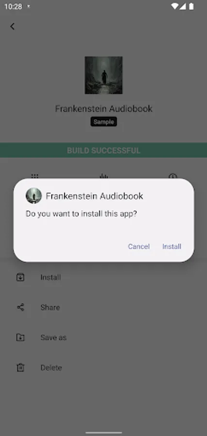 Build your app, it can take few minutes depending on your audioapp content