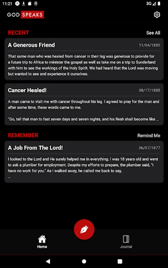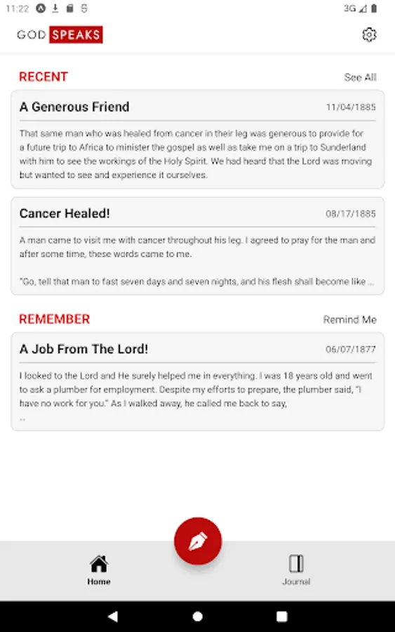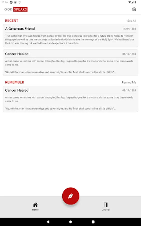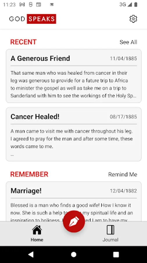 GodSpeaks helps you capture and remember what the Lord has done in your life. Whether it's your morning time in the Word or prayer, a song that brings you to tears, a timely phone call from a friend, a verse that seems to highlight itself, a dream that changes your perspective, or a message that pierces your heart, God is speaking to you. And we believe that when God speaks, it deserves to be recorded and remembered. We built GodSpeaks to help people do just that.