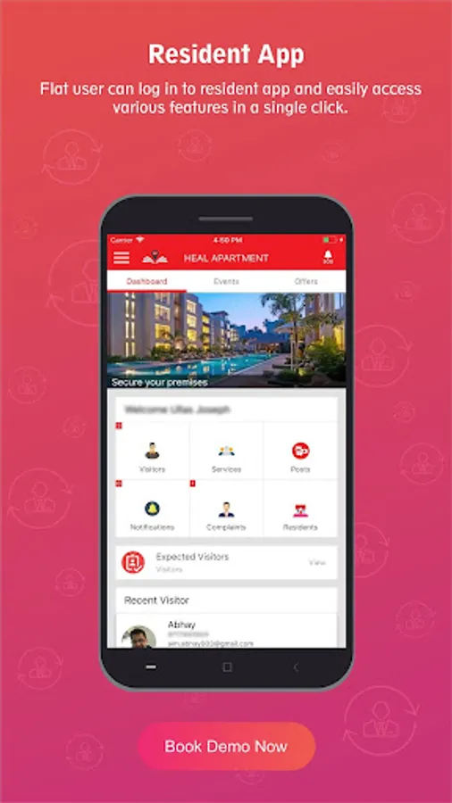 Information about the events upcoming or completed, would be sent in the form of a notification and resident can have a look to those images via gallery option in the app.