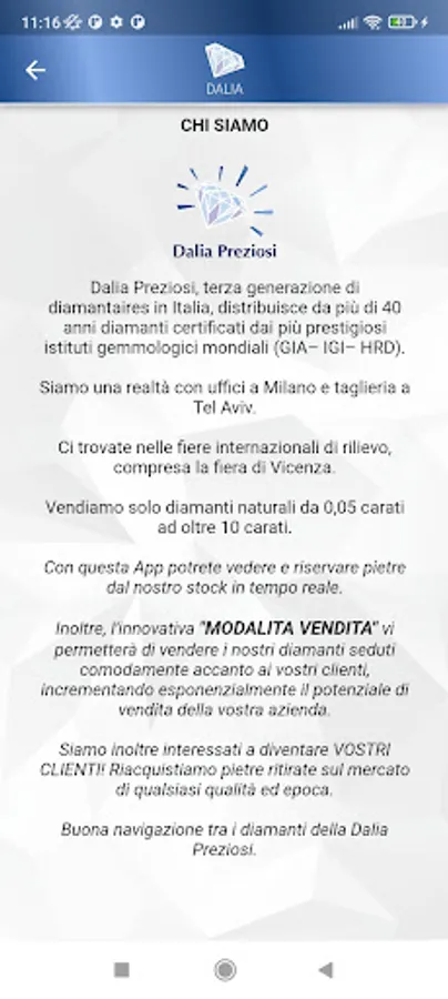 Dalia Preziosi, the third generation of diamantaires in Italy, has been distributing diamonds certified by the world's most prestigious gemological institutes for more than 40 years (GIA– IGI– HRD).